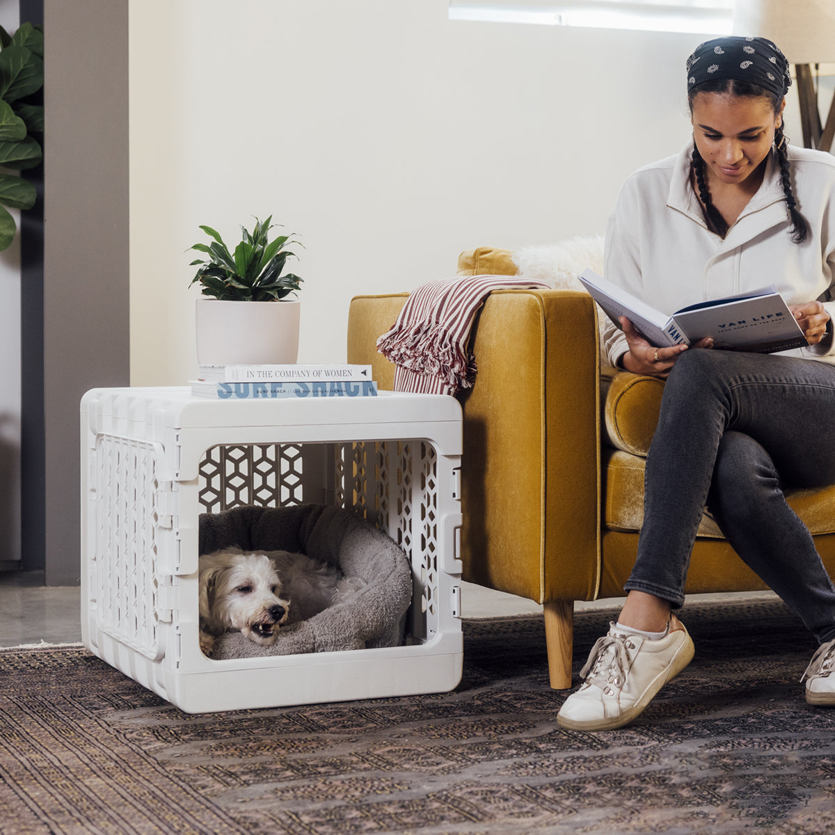 Give your pet a comfortable and secure space to rest with this modern collapsible pet crate. Designed for both functionality and style, this lightweight crate provides a cozy den where cats, dogs, and small pets can relax, nap, and feel safe at home.