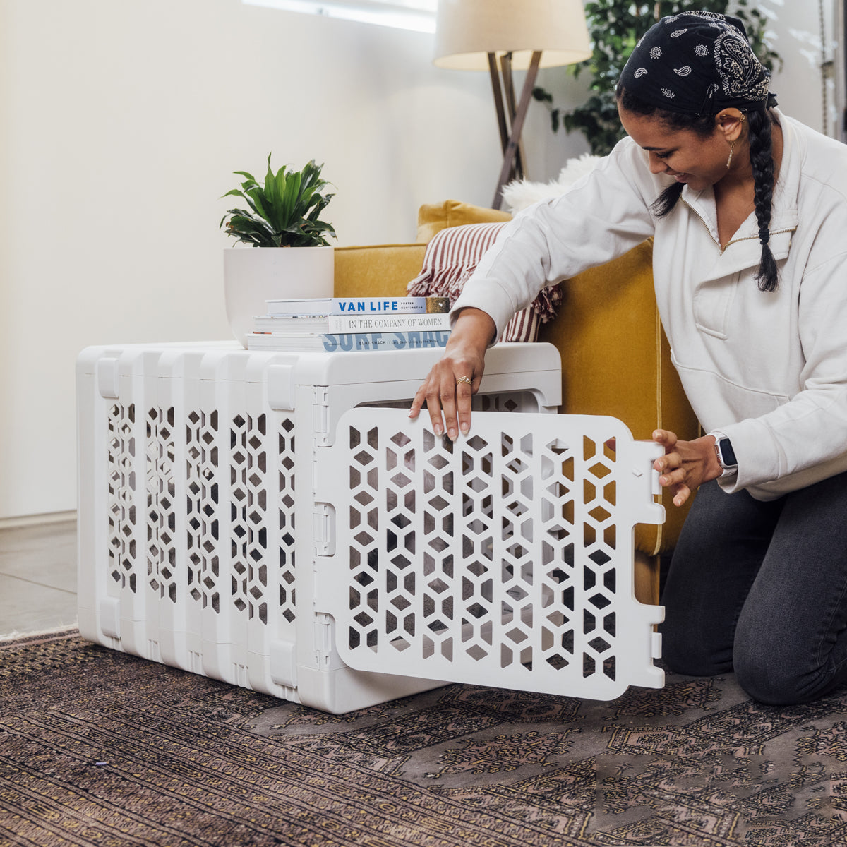Made from durable, pet-safe plastic materials that are BPA and toxin-free, the crate offers long-lasting reliability while ensuring a safe environment for your pet. The ventilated panels provide proper airflow to keep pets comfortable while resting inside.