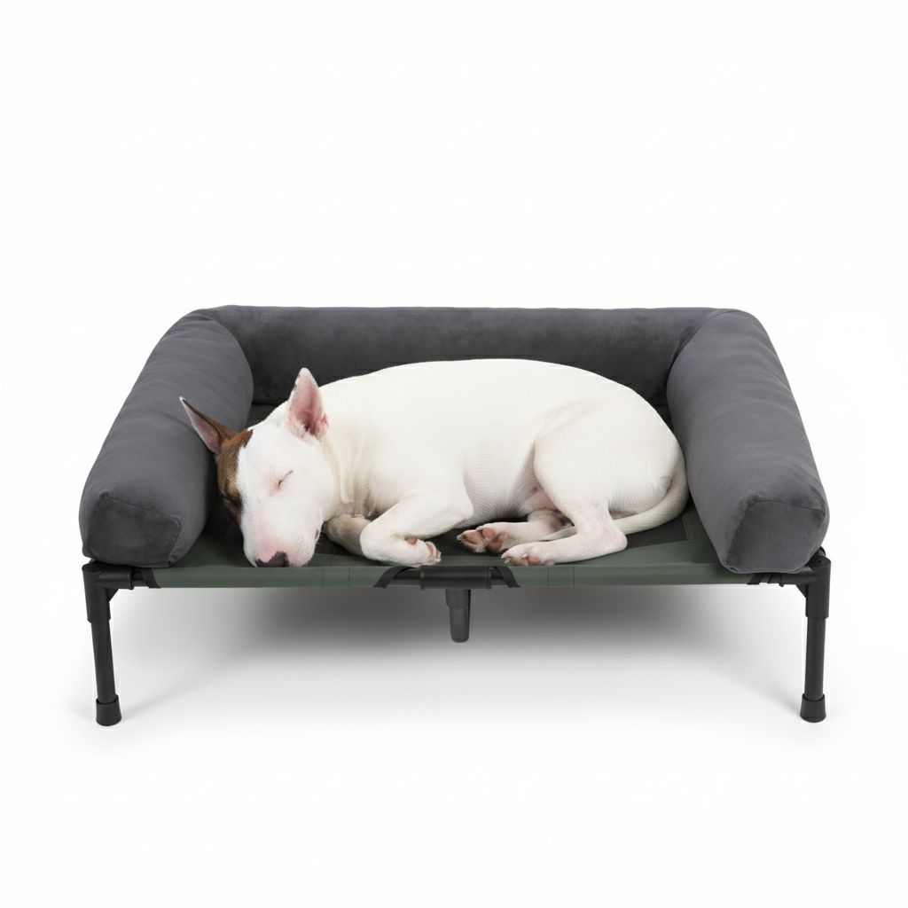 Give your dog a cleaner, cooler, and more comfortable place to rest with this raised sofa-style dog bed. Built with a sturdy elevated frame and soft padded side bolsters, it creates a cosy “sofa” feel while keeping your pet off the floor. The elevated design helps improve airflow underneath the bed, which can keep your dog feeling cooler and more comfortable—especially during warmer days or in rooms with hard flooring.